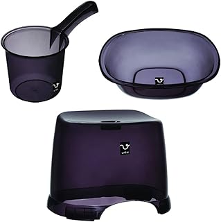アンティクリスタル 計3点セット 風呂椅子角HK 洗面器 手桶 シンカテック (クリアグレー)
