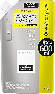 flat(フラット) 【大容量】 エッセンシャル フラット ボリュームダウン シャンプー くせ毛 うねり髪 毛先 広がりにくい ストレートヘア ゴワつき除去成分配合 (洗浄成分) 詰替 600ml リフレッシュフローラルの香り