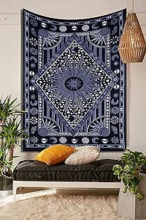 THE ART BOX 審美的な部屋の装飾 寝室 壁装飾 トリッピータペストリー 室内装飾 美しい太陽 月 壁装飾 ヒッピー絞り染め テーブルクロス サイケデリックベッドスプレッド 100%コットン グレー 140x210cm