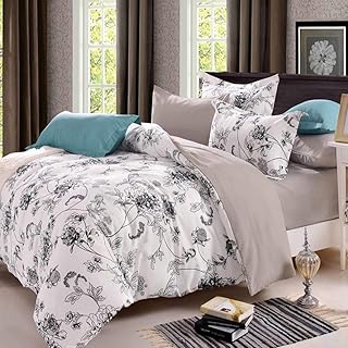 Lovesole 布団カバー ベッドカバーセット おしゃれ 北欧 綿 枕カバー 掛け布団カバー フラットシーツ シーツカバー 防ダニ 寝具カバー 優しい肌触り 柔らかい 花柄布団カバー 四節適用 かわいい (黒い花, セミダブル)