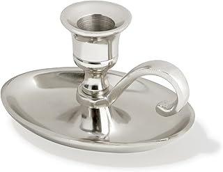 (Silver) - Silver Metal Chamberstick Candle Holder Traditional Shape Fits Standard Taper and Candlesticks - For Window and Mantle Display
