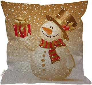 HGOD DESIGNS 雪だるま クッションカバー 面白いかわいい雪だるま 帽子とスカーフ ハンドプレゼント 綿麻 枕カバー 女性 子供 女の子 男の子 ソファ 寝室 リビングルーム 45×45