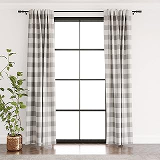Barnyard Designs バッファロー格子縞ウィンドウカーテンパネル キッチン リビングルーム 寝室 グレーとアイボリー ギンガムチェック ロッドポケットカーテン 農家 田舎 ホームデコレーション 52インチ x 84インチ 2枚セット