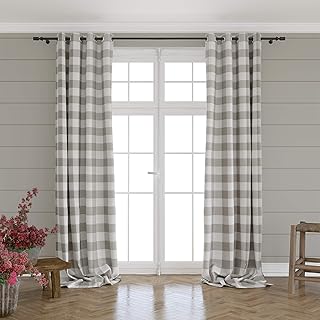 Barnyard Designs バッファロー格子柄遮光ウィンドウカーテン キッチン、リビングルーム、寝室、グレーとアイボリーギンガムチェック グロメットカーテンパネル ファームハウスカントリーホーム装飾 96インチ x 52インチ 2枚セット