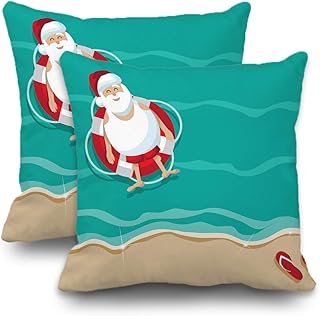 Asamour 4枚パック メリークリスマステーマ 装飾用クッションカバー お祝いの赤いサンタ 面白い引用句 コットンリネン 枕カバー クッションカバー 18インチ x 18インチ ホームカー用 18'' x 18''