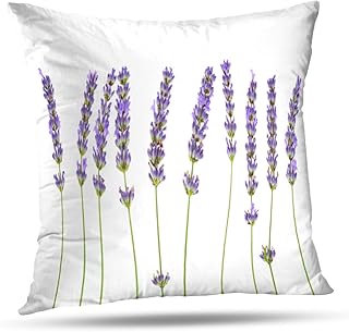 KJONG ラベンダーフラワー ホワイトラベンダー 美しいブルーム ブルースクエア 装飾枕カバー 18 x 18インチ ファスナー付き枕カバー 寝室 リビングルーム (両面プリント) 18x18 ゴールド