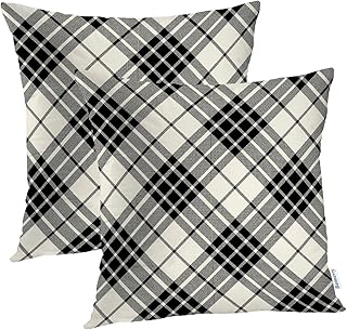 スロー枕カバー – ソファクッションカバー 18インチ x 18インチ 2パック カウチピローカバー スライダージッパー付き 肌に優しい素材と良い肌触り ブラック&ホワイトグリッド枕カバー