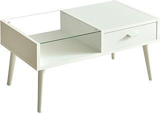 宮武製作所 ローテーブル ORLEANS 幅80x奥44.5x高さ41cm ホワイト ガラス天板 CT-845 WH