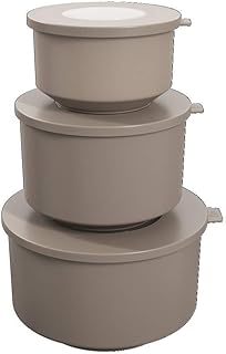 Coza- Hoopコレクション - 漏れ防止食品容器 気密蓋付き 3個セット (合計6個) - BPAフリー、電子レンジ対応 (ウォームグレー)