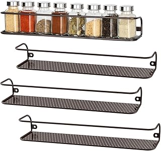 Scnvo 壁掛けスパイスラック オーガナイザー 4個パック パンチフリー フローティングシェルフストレージ パントリーキャビネットドア用 丈夫な吊り下げ調味料オーガナイザー ジャーストレージ キッチン バスルーム ブラック