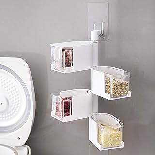 Keemov 調味料入れ 調味料ボトル壁掛け 壁掛け 回転調味料入れ 調味料ボックス 調味料ケース スパイスジャー 360°回転式 縦型 省スペース キレイに 収納 スパイス 調味料 ラック 透明 キッチン用 保存容器 家庭用 業務用 贈り物 匙付け 3個/4個セット