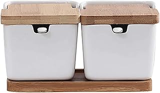 調味料入れ スパイスジャー セラミック 調味料ポット 保存容器 クリエイティブ 竹の木の蓋 調味料ジャー 調味料ボックス スパイス 塩 砂糖 飲食店 家庭キッチン用品 2点セット
