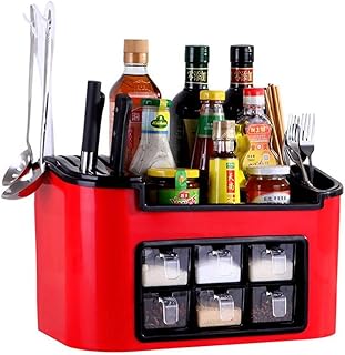 [ディーハウ]調味料ボックス 調味料収納 プラスチック 収納ラック 引き出し 整理 キレイに 収納 調味料 調味料入れ 調味料ケース 家庭用 業務用 塩 コショウ 砂糖入れ 家庭キッチン用 保存容器 おしゃれ 小物入れ 多機能 レッド