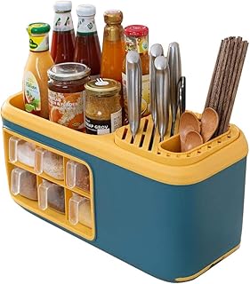 [えみり] キッチン収納 調味料入れ 調味料ボックス 収納ケース ラック 2段 箸立て 包丁収納 水切り 多機能 台所整理 キッチン用品 キッチンツール 調味料ラック 引き出し 大容量 保存容器 おしゃれ (写真通り)