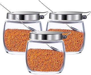 NUOLUX 調味料入れ 調味料ボトル クリル スパイス容器 塩 コショウ 砂糖入れ 台所用品 お手入れ簡単 匙付き(C)