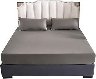 ボックスシーツ ベッドカバー 超長綿 60番手 315本高密度生地 周囲ゴムフィット式 綿100% 洗える 夏すずしい 冬あったかい 無地 グレー ダブル 140×200×30cm