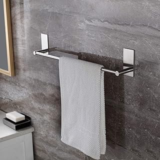(towel bar) - Self Adhesive 40cm Bathroom Towel Bar Brushed SUS 304 Stainless Steel Bath Wall Shelf Rack Hanging Towel Stick On Sticky Hanger Contemporary Style