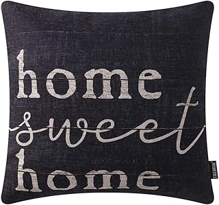 TRENDIN ファームハウス 枕カバー 18 x 18インチ ブラック ホーム スウィートホーム ファームハウスデコレーション 新築祝いのギフト 18X18 inch PL435TR