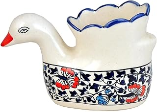 Craftghar Ceramic Cutlery Stand Holder in Handmade Spoon Stand Holder for Home and Kitchen, Blue Pottery, Duck, Blue