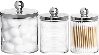 Tbestmax クリア Qtip ホルダー プラスチック 綿棒 ボールパッド オーガナイザー 薬瓶 シルバーの蓋付き バスルームコンテナ (3パック)