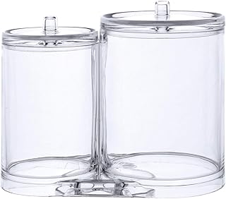 Tbestmax 綿棒パッドホルダー コットンバッド ボールディスペンサー クリアバスルームコンテナ 薬瓶 Qtip 収納用 2つのセクションと蓋付き