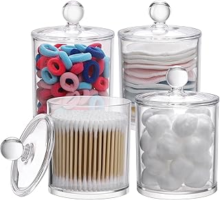Tbestmax 薬瓶 3個パック クリア プラスチック Qtip ホルダー コットンボール スワブキャニスター 蓋付き バスルームアクセサリーオーガナイザー
