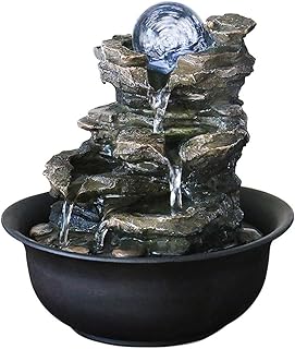 インテリア卓上噴水 4層ラミネート樹脂禅屋内噴水ミニ水噴水LEDクリスタルボール空気加湿器風水装飾品卓上噴水ホームオフィス用装飾工芸品 室内噴水 (Color : Gray, サイズ : 21*21*29cm)