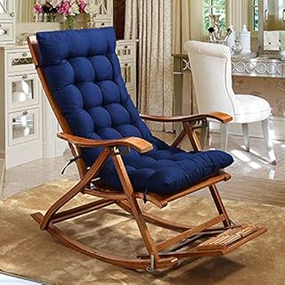 ユニバーサル サンラウン ジャー クッション ハイバック ロッキング 椅子のクッション 厚い 交換 籐 椅子のクッション ソファのクッション シートクッション パッド 関係-ネイビー 40x110cm(16x43インチ)