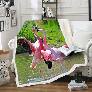 LUTTY ブランケット スロー フラミンゴ シェルパウールフリースフラシ天 快適で暖か ソフトで快適なブランケット ソファ/寝室用 (60インチ×80インチ)