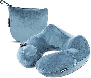 ネックピロー BestMaxs トラベルピロー 旅行便利グッズ トラベル 飛行機 持ち運び便利 手動プレス式 洗えるカバー (グレー)