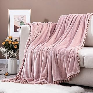 YOKISTG ブランケット 毛布 ひざ掛け かけ布団 シングル フランネル ピンク かわいい 70x100cm 夏用 装飾ボール付き 暖かい 柔らかい 通年使用 洗える
