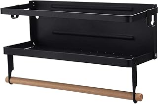 ddLUCK 冷蔵庫 マグネット スパイスラック 冷蔵庫ラック 調味料 収納 キッチンペーパーホルダー マグネット 調味料ラック キッチン ラック マグネット 棚 調味料入れ (40*30*10cm 黒)