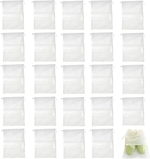 [シーポッシュ] 靴袋 シューズバック 不織布 巾着袋 収納袋 服入れ 透明窓付き 靴収納ケース(白 M 20枚入り)