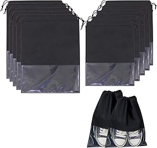 巾着袋 靴 不織布 袋 シューズバック 透明窓付き (32×44cm/10枚セットor20枚セット) 靴袋 巾着 シューズケース 収納袋 服入れ 旅行収納ケース 靴入れ袋 【Dante4】 (10枚セット)